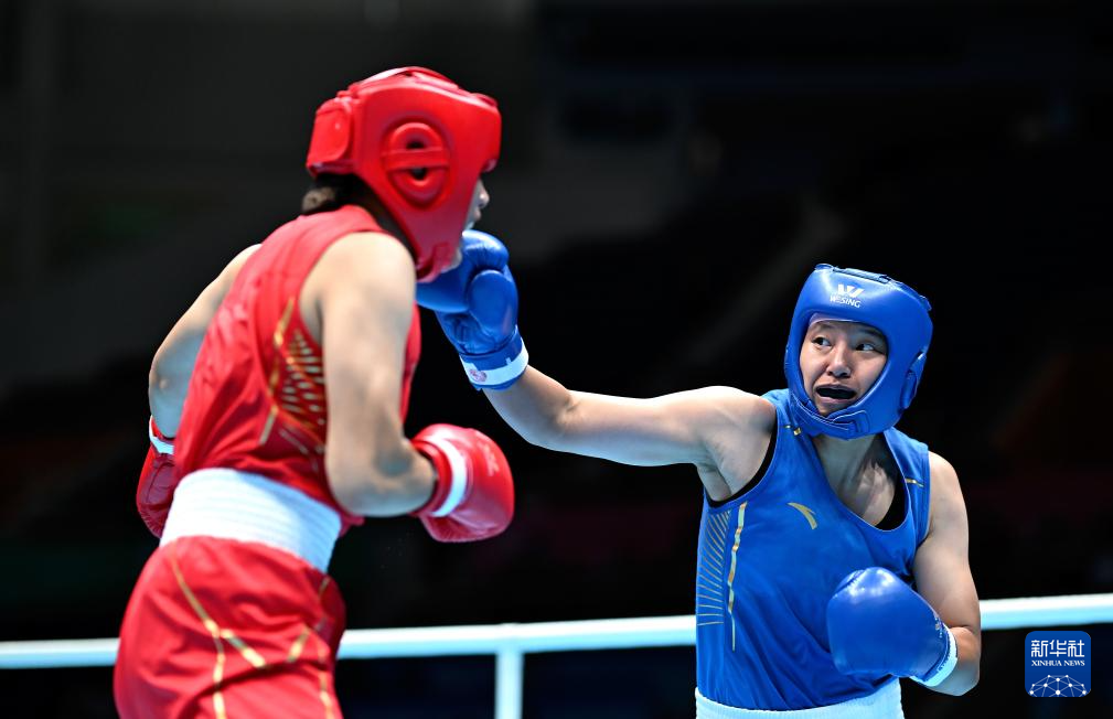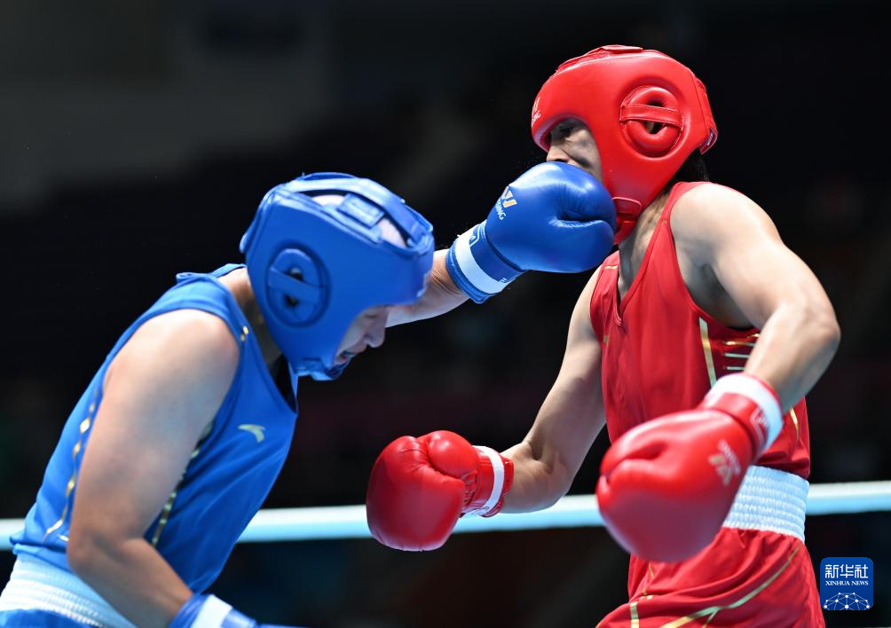 当日,在广东深圳进行的第十五届全国运动会拳击女子75公斤级决赛中,浙江队选手叶金战胜黑龙江队选手汪丽娜,夺得冠军。