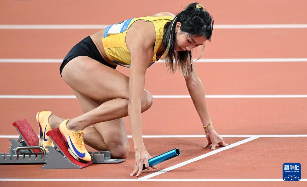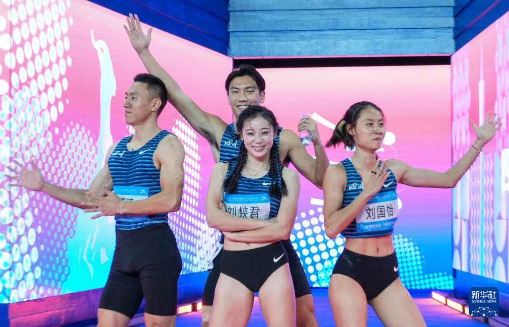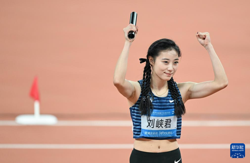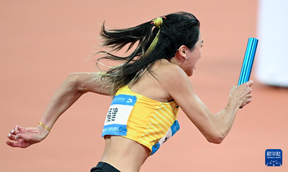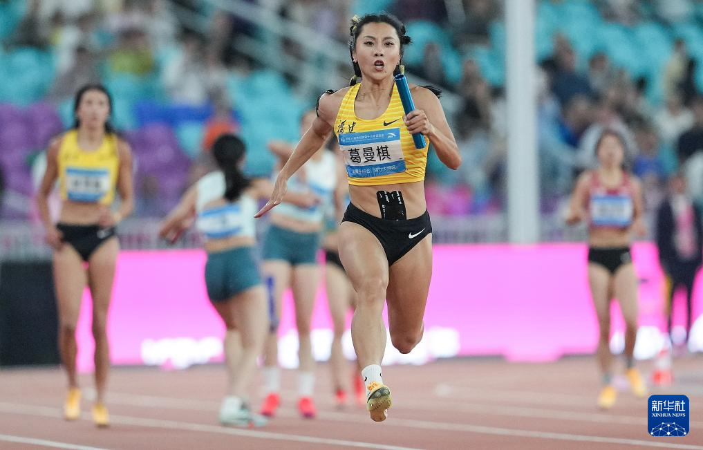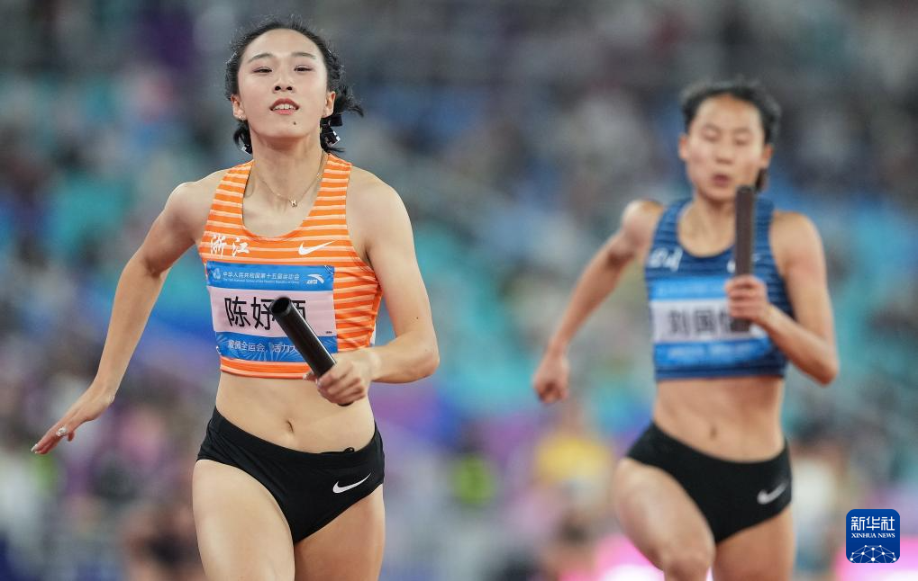 当日,第十五届全国运动会田径4X100米混合接力决赛在广州举行。