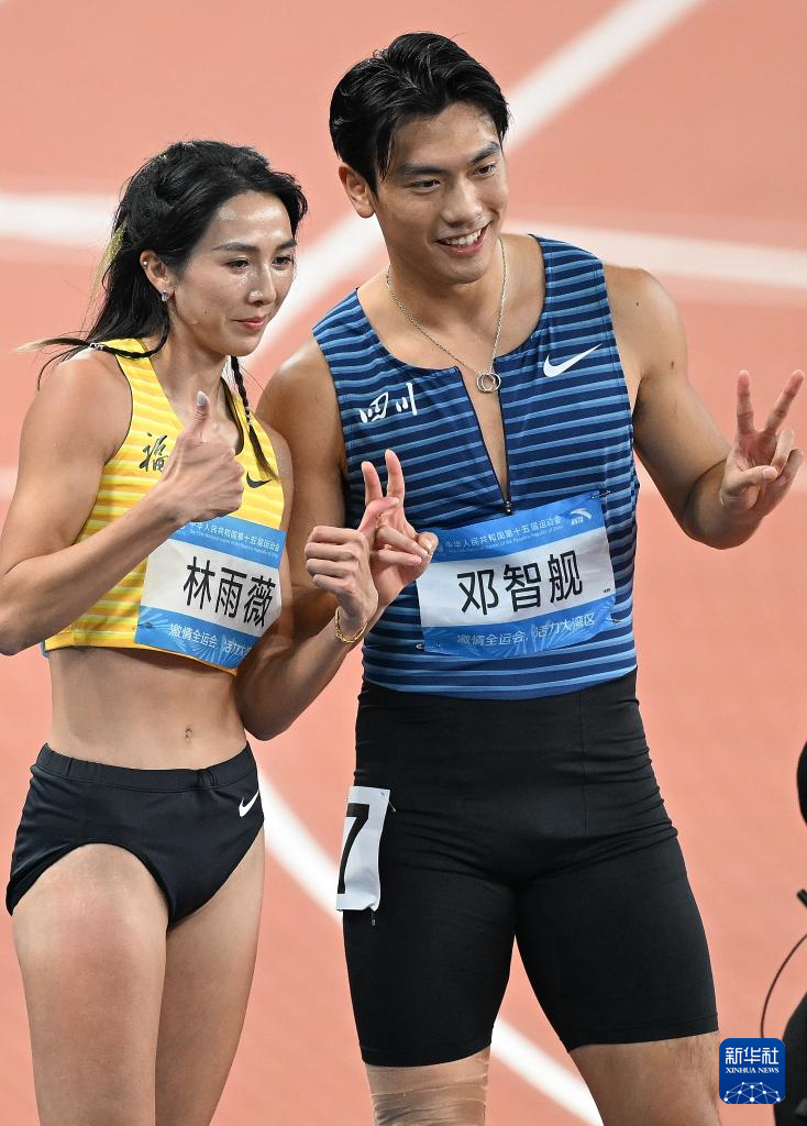 11月15日,福建队选手林雨薇(左)和四川队选手邓智舰在赛场上合影。