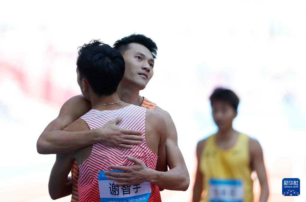 11月16日,河南队谢智宇(前)与浙江队冯志强在赛后拥抱致意。他们分别获得预赛第1组第一名和第二名。