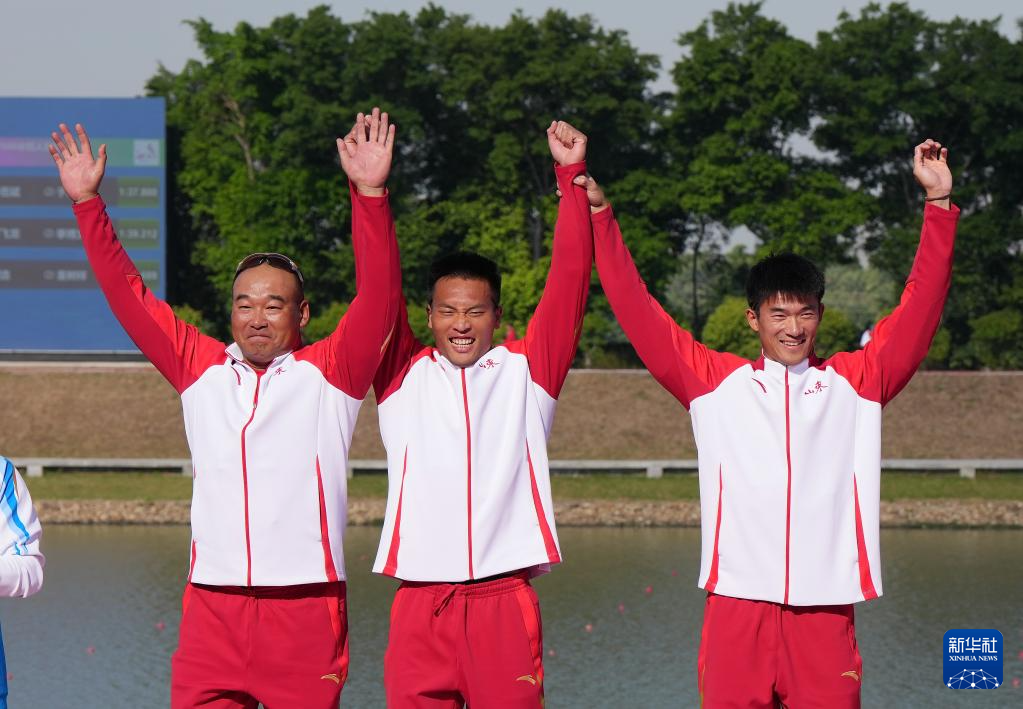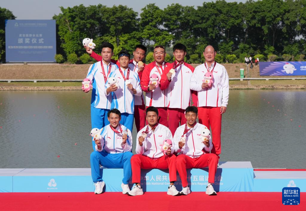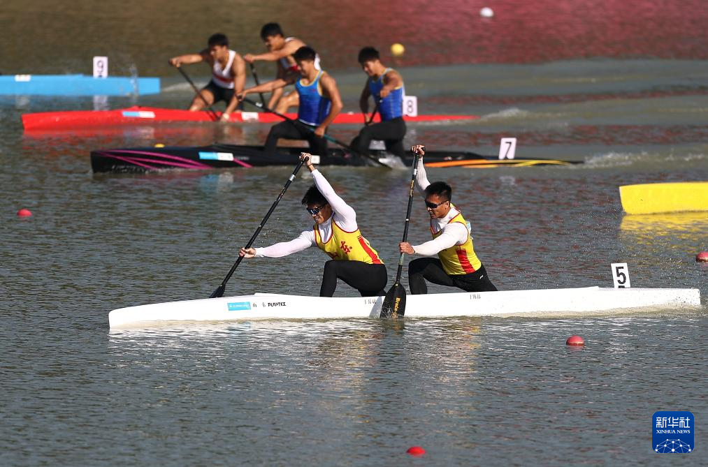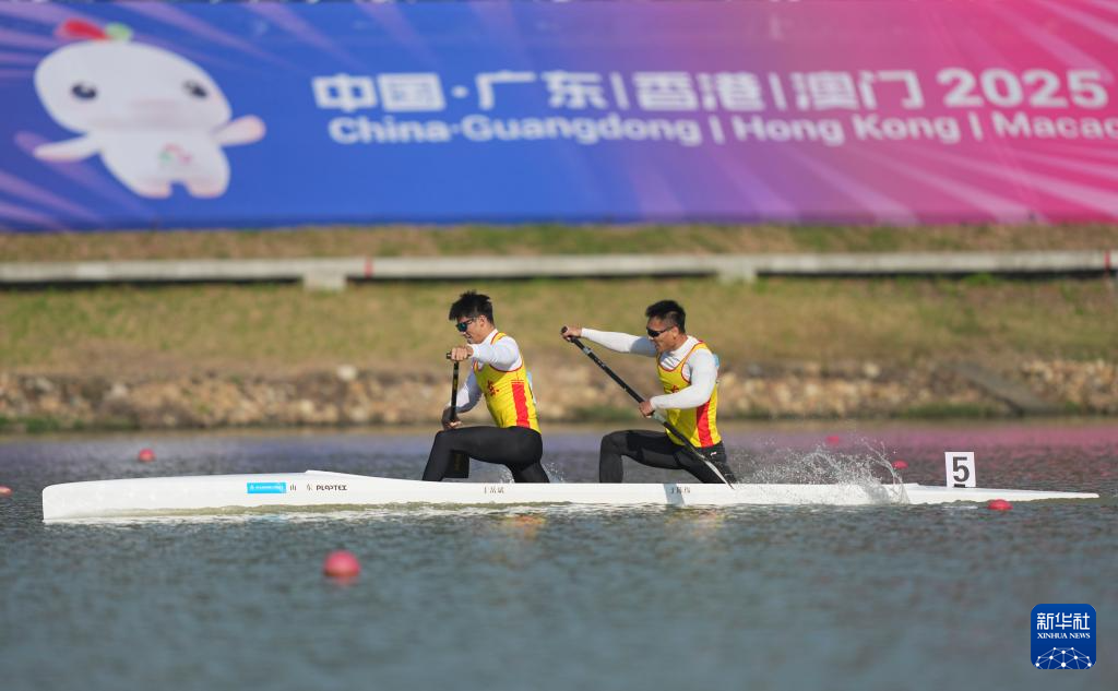 当日,第十五届全国运动会皮划艇静水项目男子500米双人划艇决赛在广州举行。