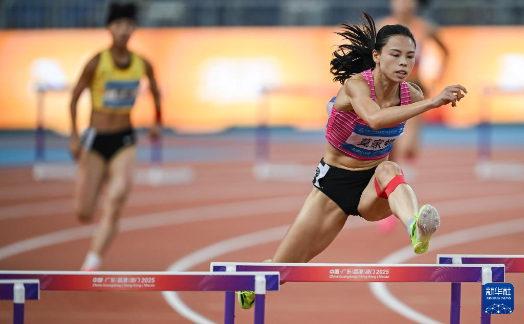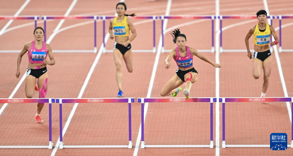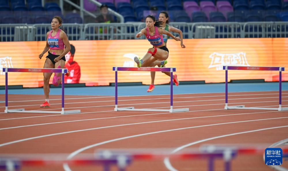 当日,第十五届全国运动会田径女子400米栏决赛在广州举行。