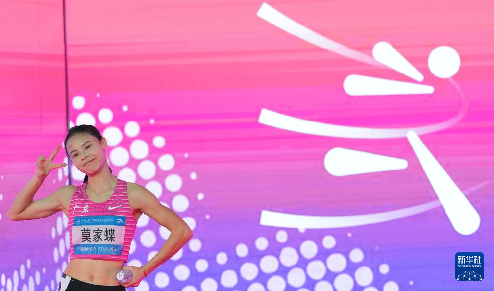 11月17日,广东队选手莫家蝶在比赛后庆祝。她夺得冠军。