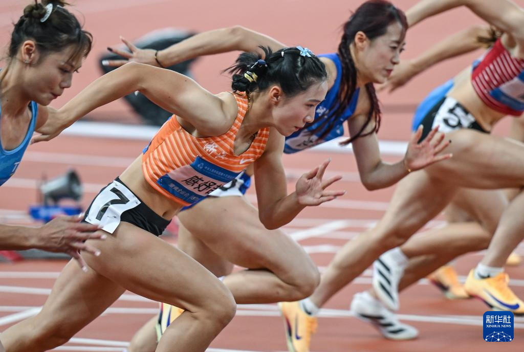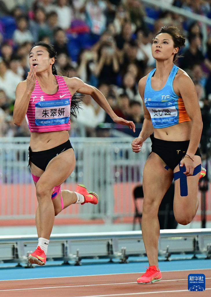 当日,第十五届全国运动会田径女子100米复赛在广州举行。
