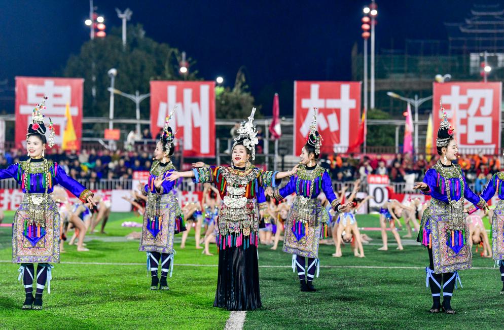 在“村超”赛场,侗族大歌、苗族舞蹈与足球竞技同台绽放,地方美食与激情呐喊交织共鸣;在“苏超”看台,“水蜜桃加油”“盐水鸭必胜”的趣味口号,以及各赛区融入的地方戏曲、非遗展示,将一场场比赛升级为地域文化展示的嘉年华,让更多人为家乡自豪、为中国喝彩。这一刻,足球背后注入了更宏大的意义。
