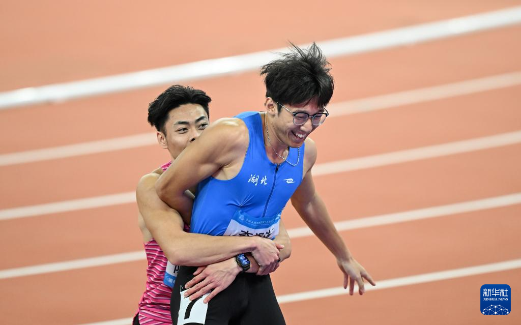 11月17日,湖北队选手李泽洋(左)在冲线后庆祝。