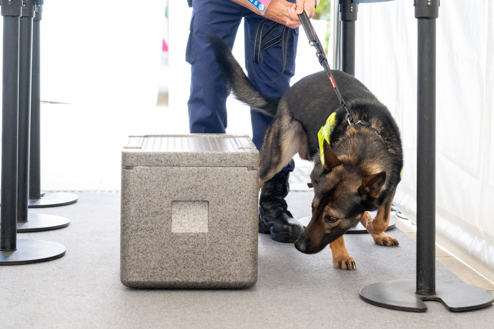 人员进出频繁、货品种类繁多,Rich必须以高度敏感的嗅觉在复杂环境中迅速识别风险。每天8小时左右的执勤,它从未懈怠。器材箱通过安检通道时,它会低头嗅闻,遇到可疑气味,它就立刻停下双眼紧盯目标,并向林警官作出示警。