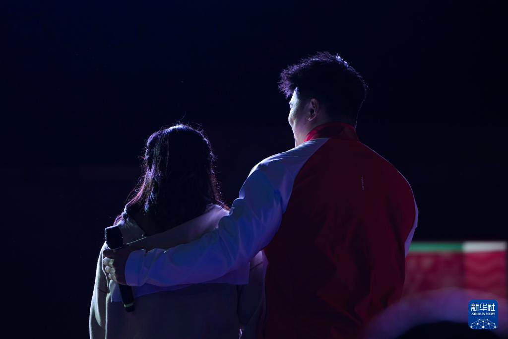11月19日,天津队选手刘焕华(左)在赛后向女友求婚。
