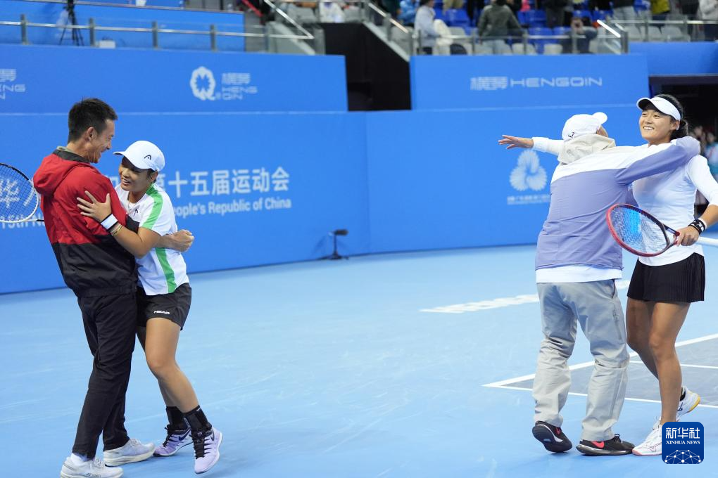 当日,在广东横琴举行的第十五届全国运动会网球项目女子双打决赛中,四川队组合王雅繁/蒋欣玗2比1战胜广东队组合王欣瑜/袁悦,夺得冠军。