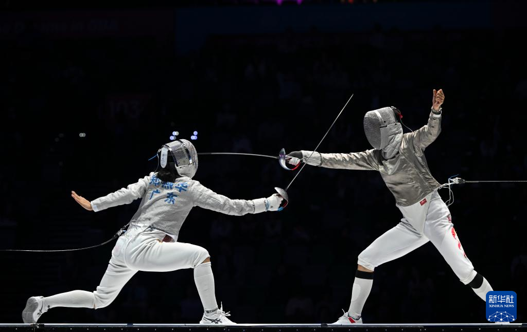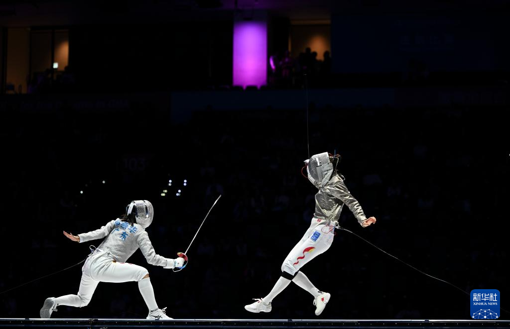 11月19日,广东队选手郑燕华(左)与江苏队选手钱佳睿在比赛中。