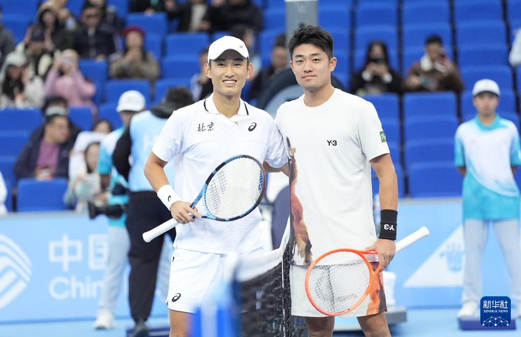 11月20日,北京队选手商竣程和浙江队选手吴易昺(右)在比赛前合影。
