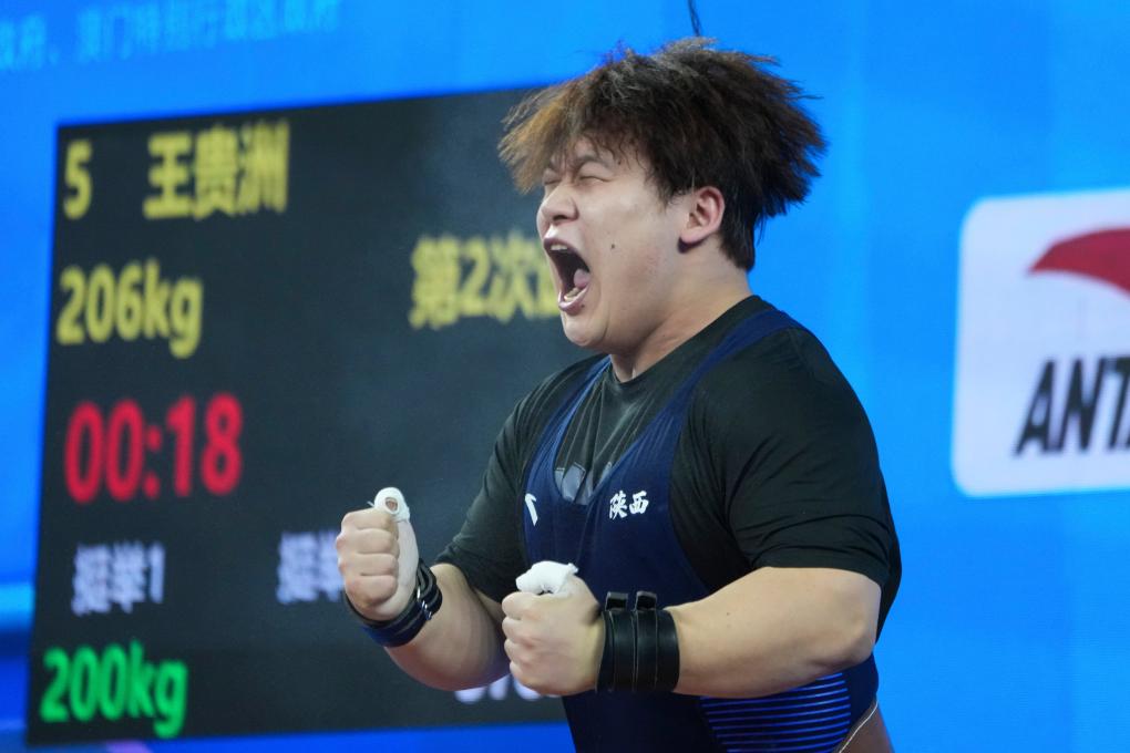 进入挺举比赛后,王贵洲虽然在第三把试举挑战208公斤失败,但仍凭借384公斤的总成绩夺冠。“刚刚教练还跟我讲,这是66年以来属于陕西的第一块全运会(举重)金牌。特别开心!”他说。
