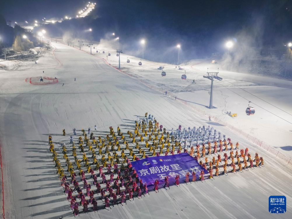 11月21晚,在位于吉林省吉林市的中旅松花湖度假区,260余位滑雪者身着京剧服饰进行主题滑雪秀,将国粹艺术与冰雪运动融合,以一场古今碰撞的视觉盛宴点燃新雪季的冰雪激情。