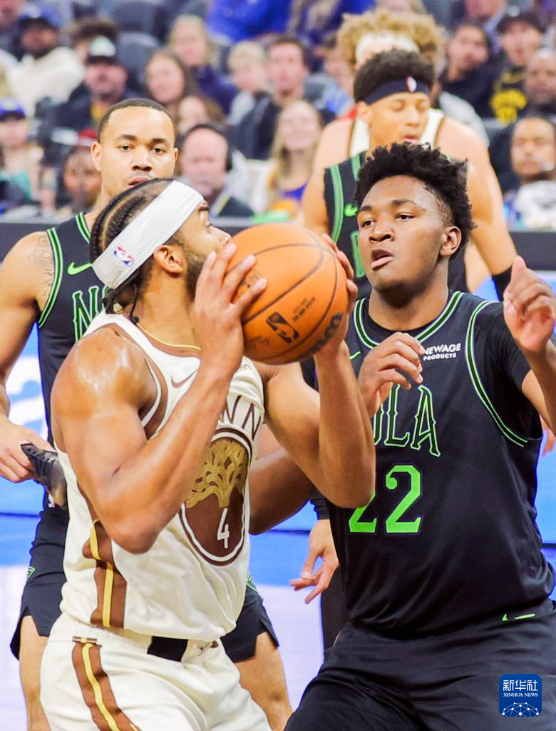 11月29日,勇士队球员穆迪(左二)和鹈鹕队球员萨迪克·贝(左一)在比赛中拼抢。