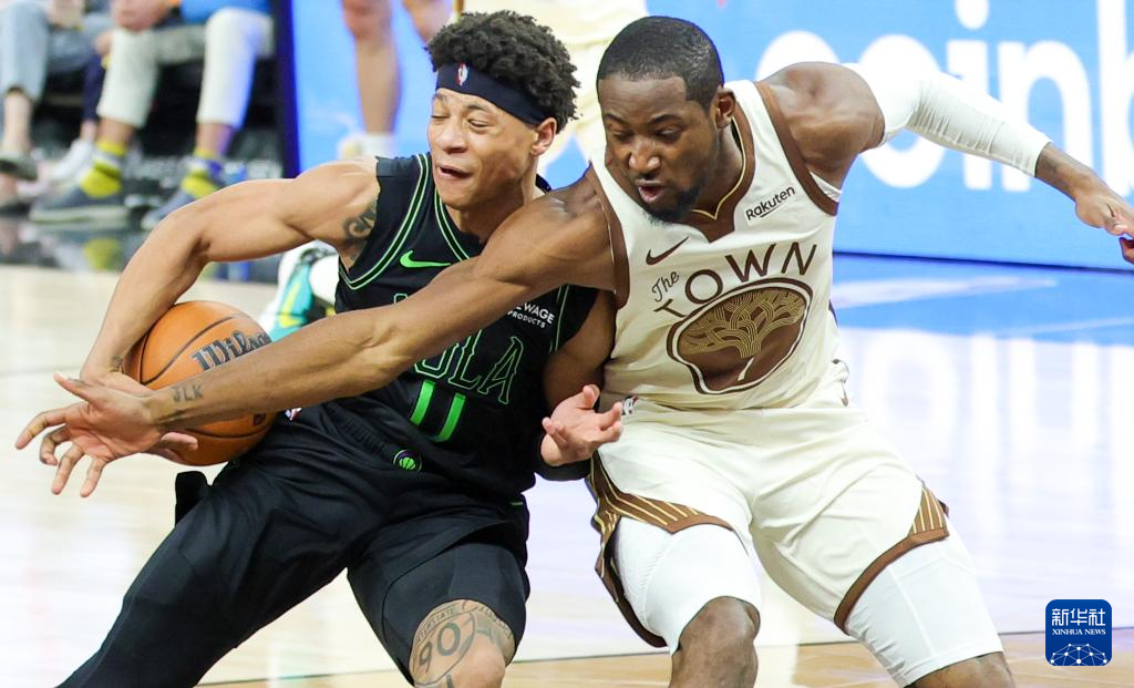 11月29日,勇士队球员库明加(右)和鹈鹕队球员费尔斯在比赛中拼抢。