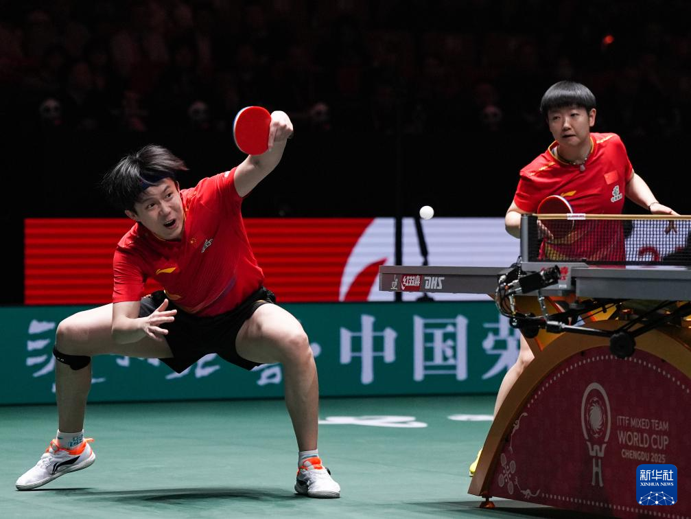 当日,在四川成都举行的2025年国际乒联混合团体世界杯第二阶段比赛中,中国队总比分8比5战胜日本队。
