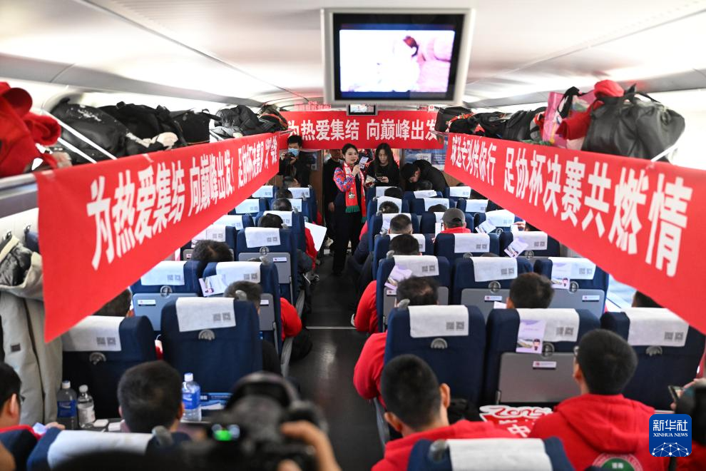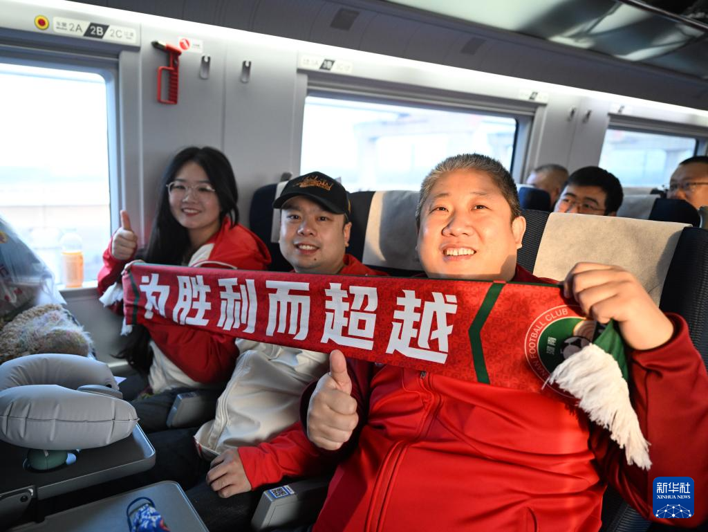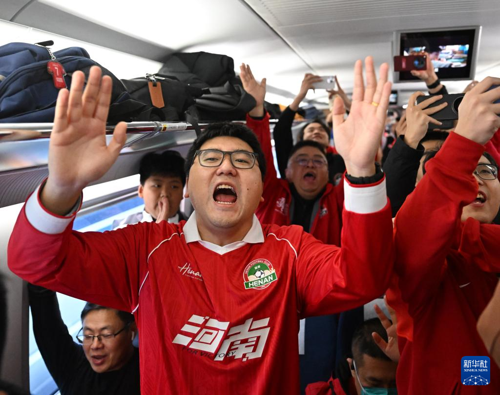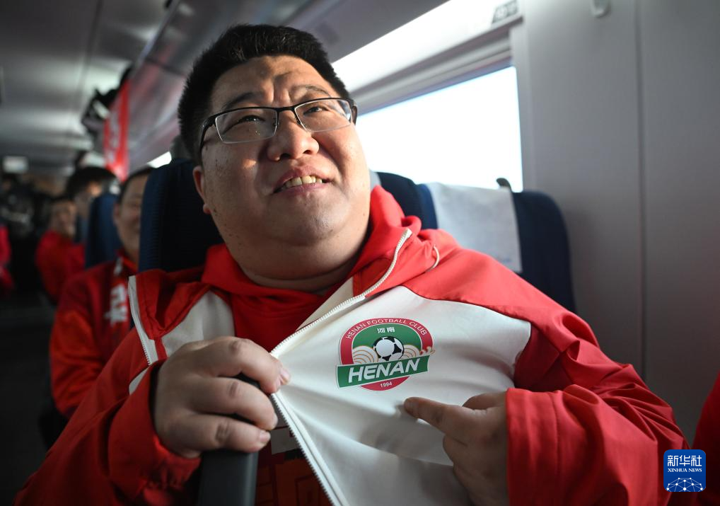 12月6日,河南俱乐部酒祖杜康队球迷在G1801次列车上为球队加油助威。