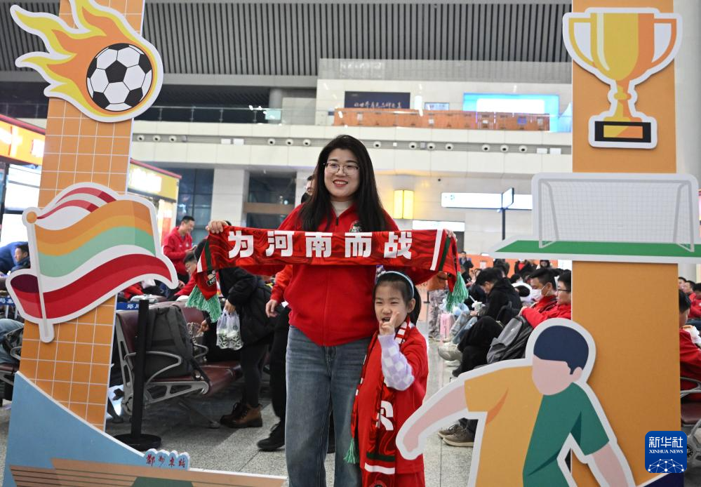 12月6日,河南俱乐部酒祖杜康队球迷在郑州东站拍照留念。