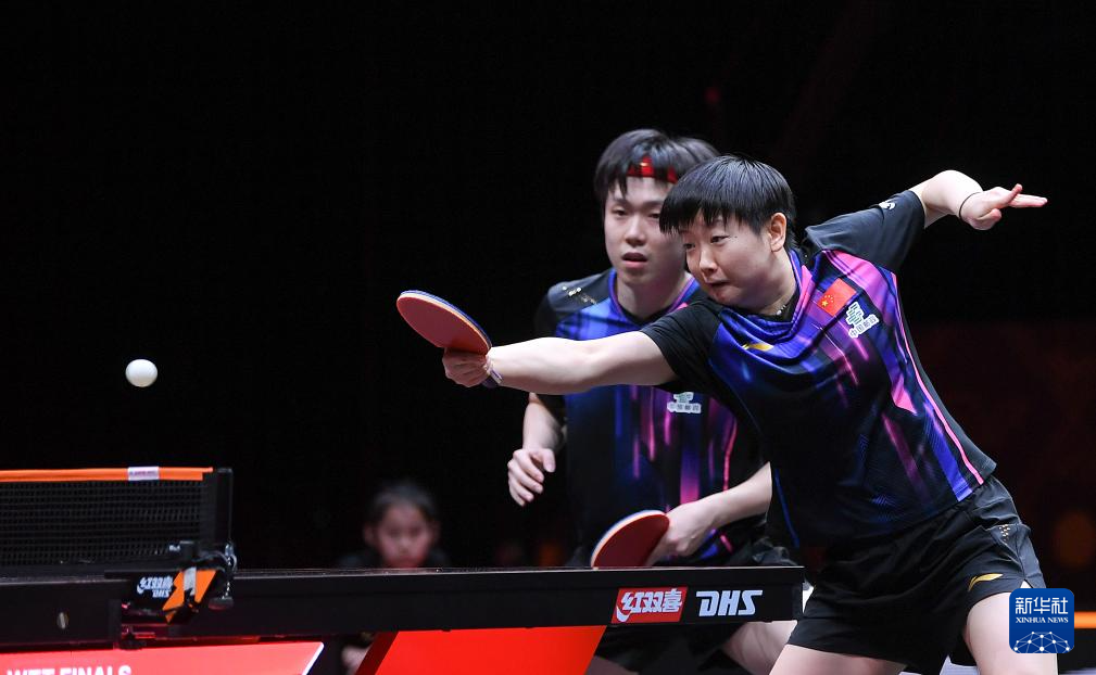 12月11日,王楚钦(左)/孙颖莎在比赛中。