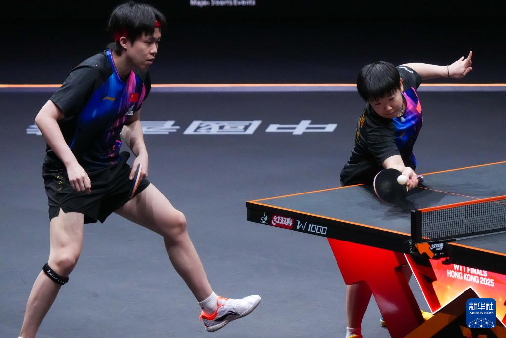 当日,在香港进行的2025年世界乒乓球职业大联盟(WTT)总决赛混双小组赛中,中国组合王楚钦/孙颖莎3比0战胜队友林诗栋/蒯曼。
