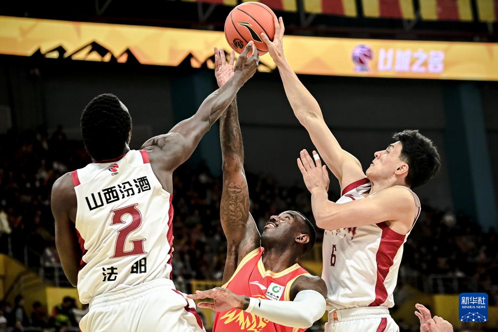 12月12日,山西汾酒队球员迪亚洛(右二)在比赛中进攻。