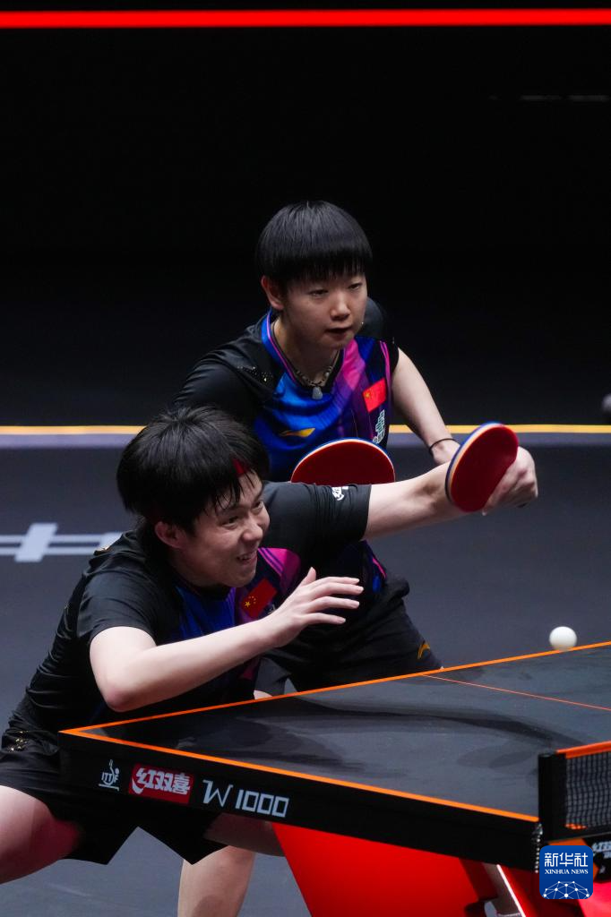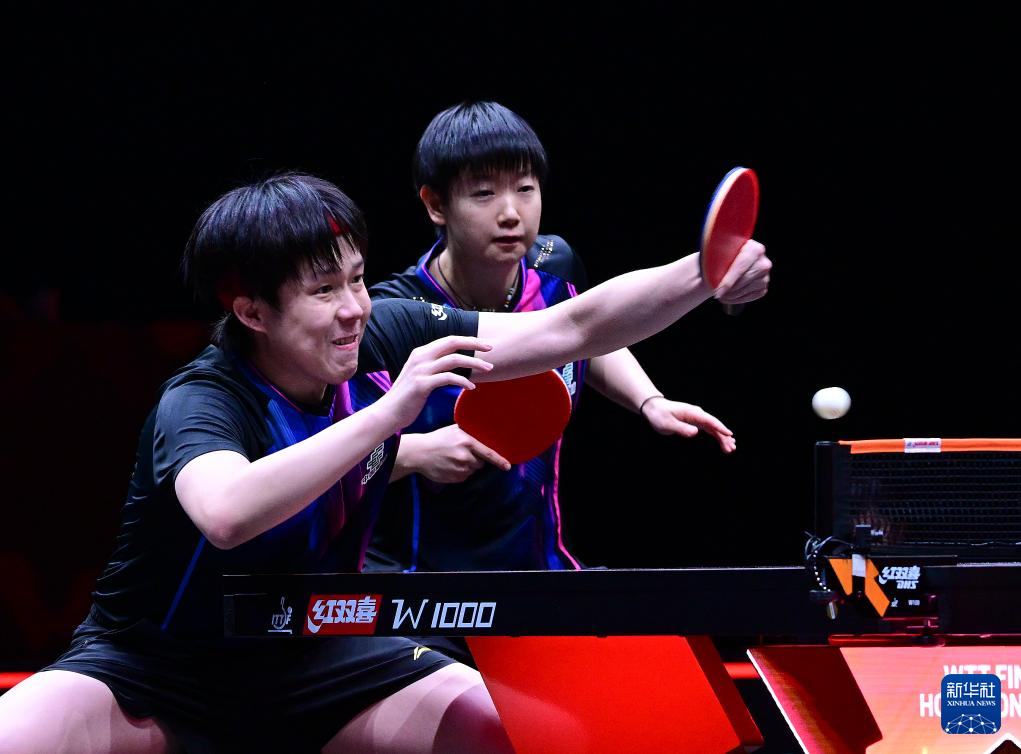 12月12日,中国组合王楚钦/孙颖莎(右)在比赛中。