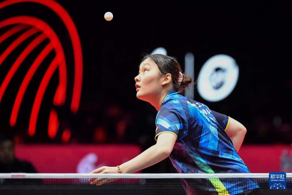 12月26日,华东理工大学队选手王晓彤在比赛中。她3比2战胜山东鲁能队选手陈幸同。