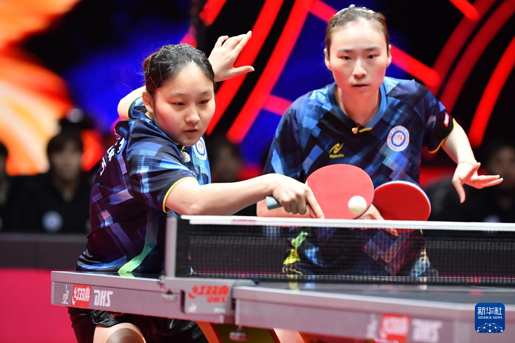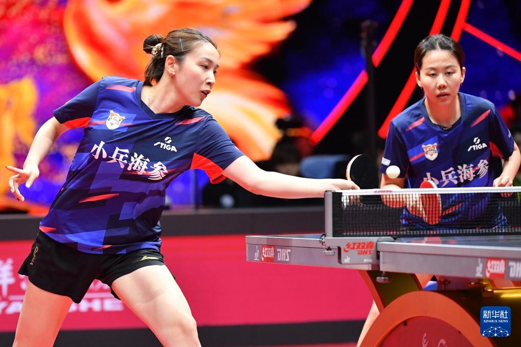 12月26日,山东鲁能队组合陈幸同/钱天一(左)在比赛中。她们3比2战胜华东理工大学队组合李雅可/王晓彤。