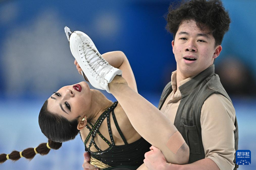 12月27日,广东省黄村体育训练中心组合肖紫兮(右)/何凌昊在冰舞自由舞比赛中。他们获得冰舞项目季军。