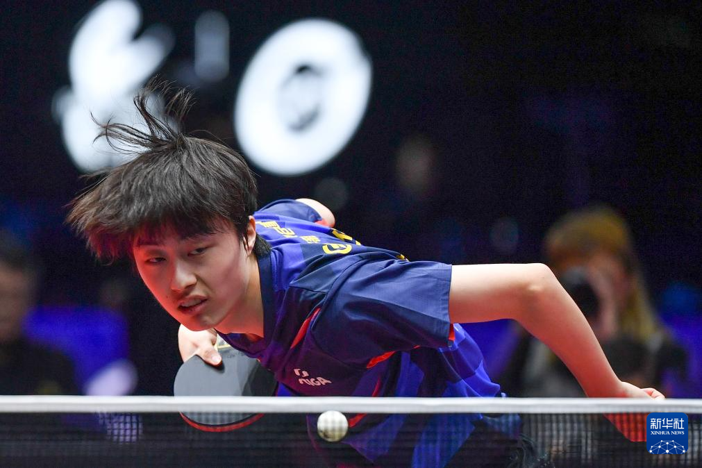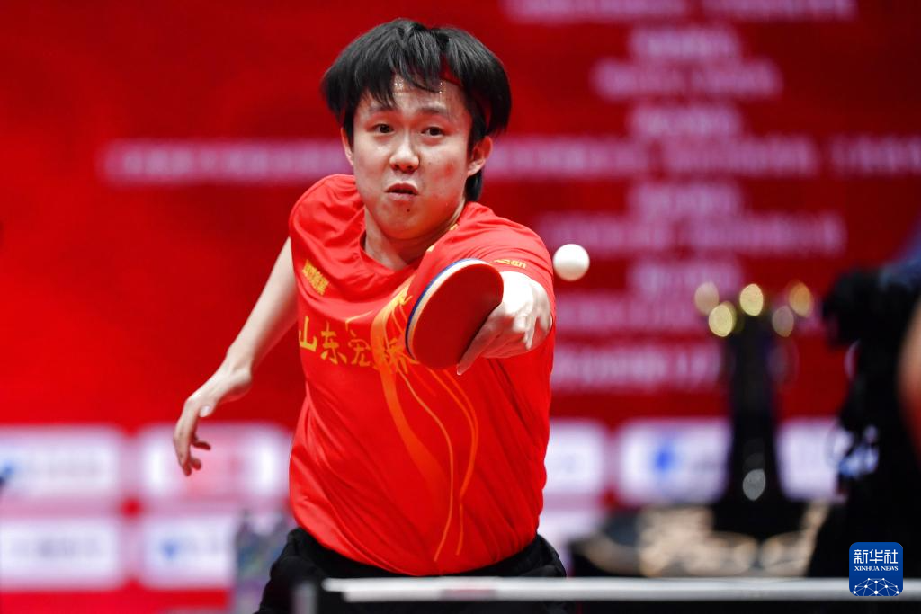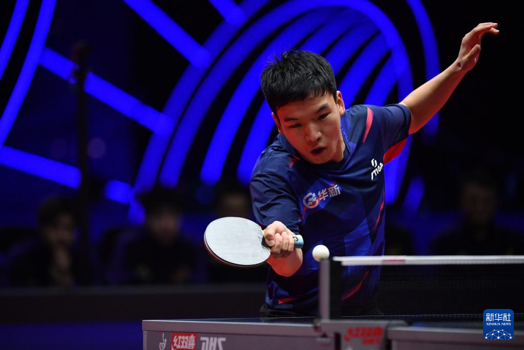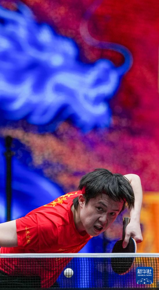 12月28日,山东魏桥·向尚运动队选手王楚钦在单打比赛中回球。他3比1战胜黄石华新队选手向鹏。