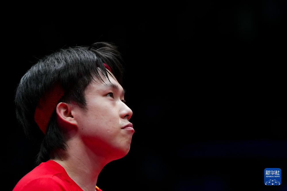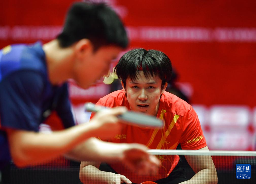 12月28日,山东魏桥·向尚运动队选手王楚钦在单打比赛中。他3比1战胜黄石华新队选手向鹏。