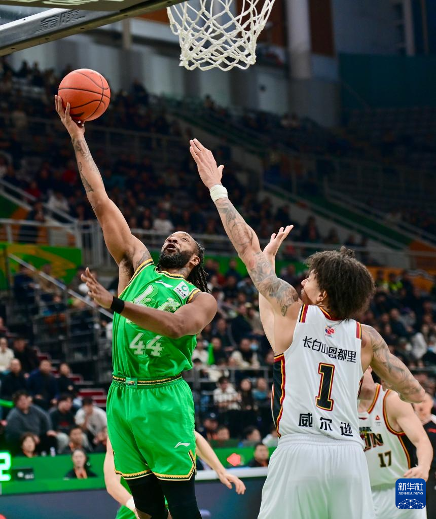 1月4日,吉林长白山恩都里队球员摩尔在比赛中投篮。
