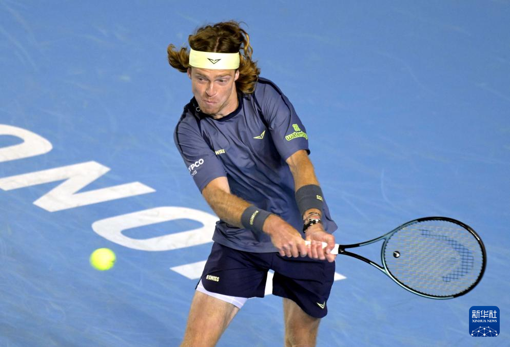 1月7日,卢布列夫在比赛中回球。