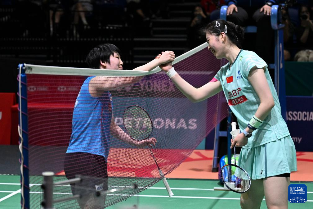 1月8日,高昉洁(右)在比赛后与山口茜握手致意。