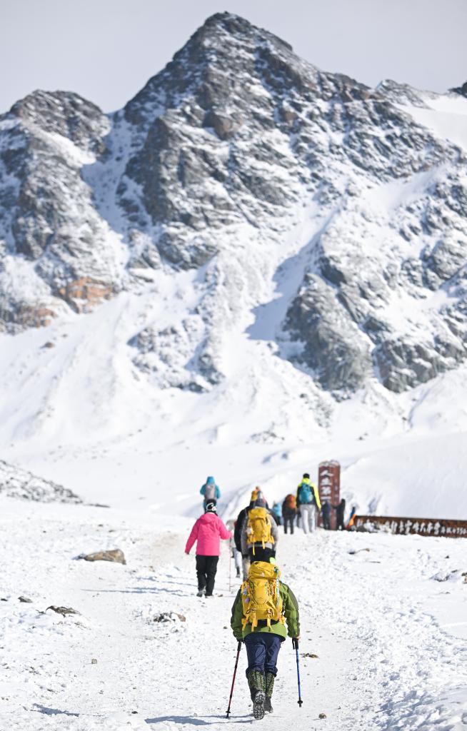 新华社西宁1月8日电(记者孙爱东、李琳海)小寒节气,天寒地冻。湛蓝天空下,岗什卡雪山巍然耸立。山谷气温已降到零下20摄氏度。然而,在岗什卡雪山游客服务中心,却是人潮涌动,呈现出热“雪”沸腾的景象。全国各地慕名而来的冰雪运动爱好者背着各种登山装备,正整装待发,准备打卡“人生第一座雪山”。