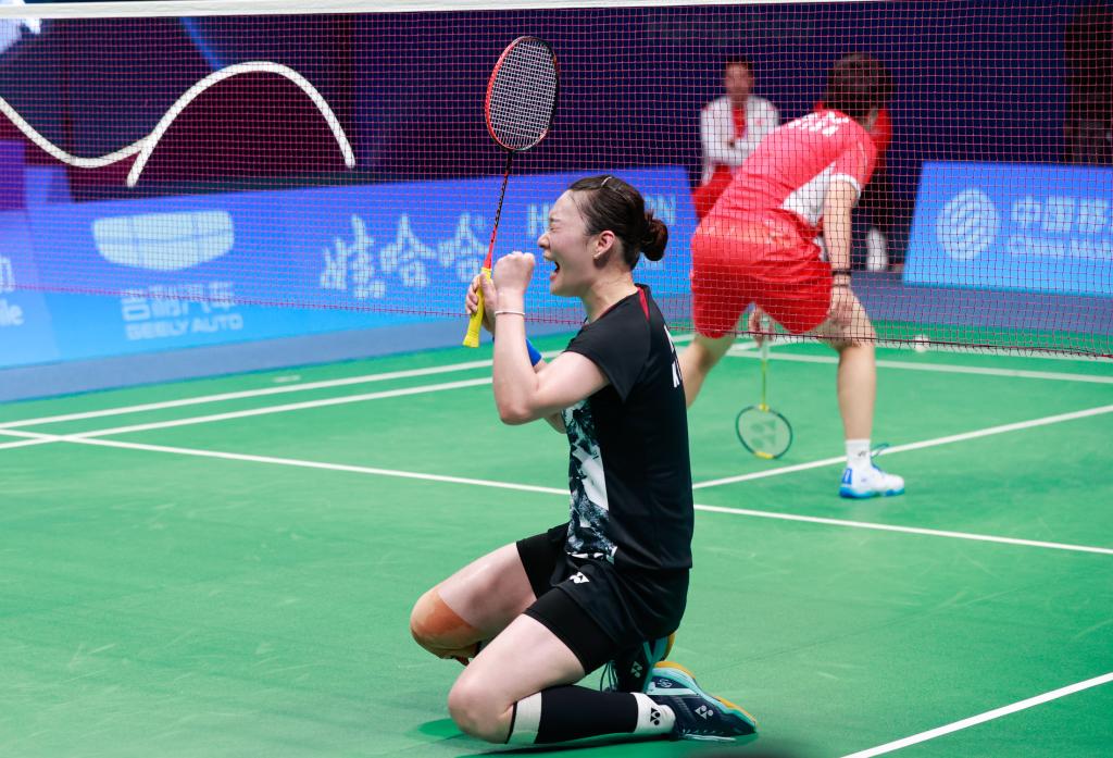 ↑2024年5月5日,中国男、女羽毛球队在成都举行的汤姆斯杯暨尤伯杯决赛中均战胜印度尼西亚队,夺得队史第11座汤姆斯杯和第16座尤伯杯,时隔12年再度包揽汤尤杯