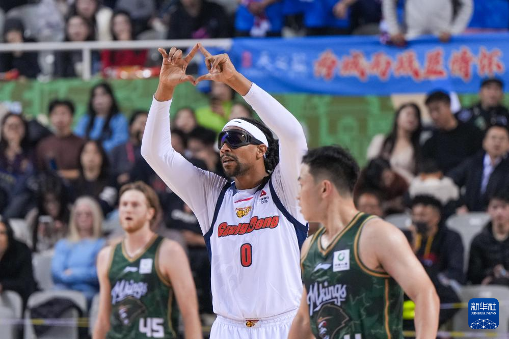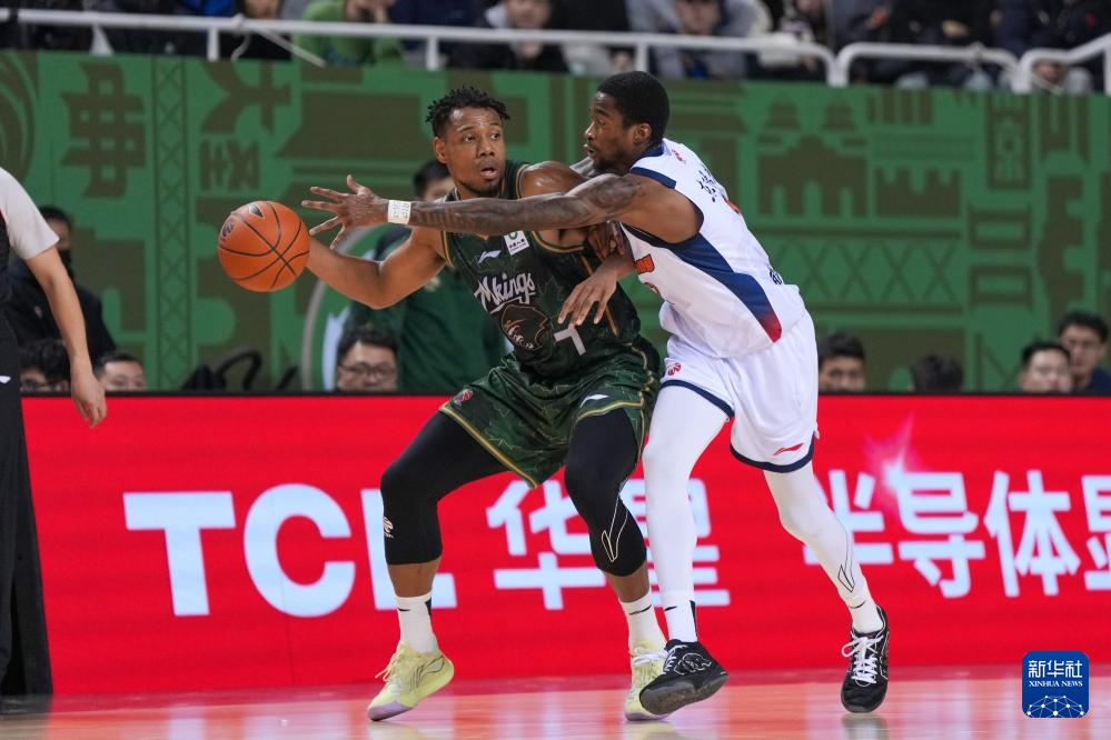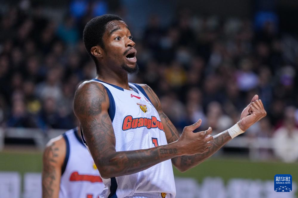 1月13日,广东东阳光队球员萨林杰(中)在比赛中指挥队友进攻。