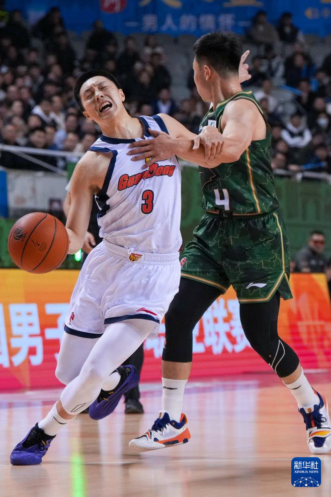 1月13日,广东东阳光队球员胡明轩(右)在比赛中。