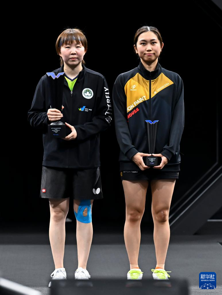 1月18日,朱雨玲(左)、佐藤瞳在颁奖仪式上。