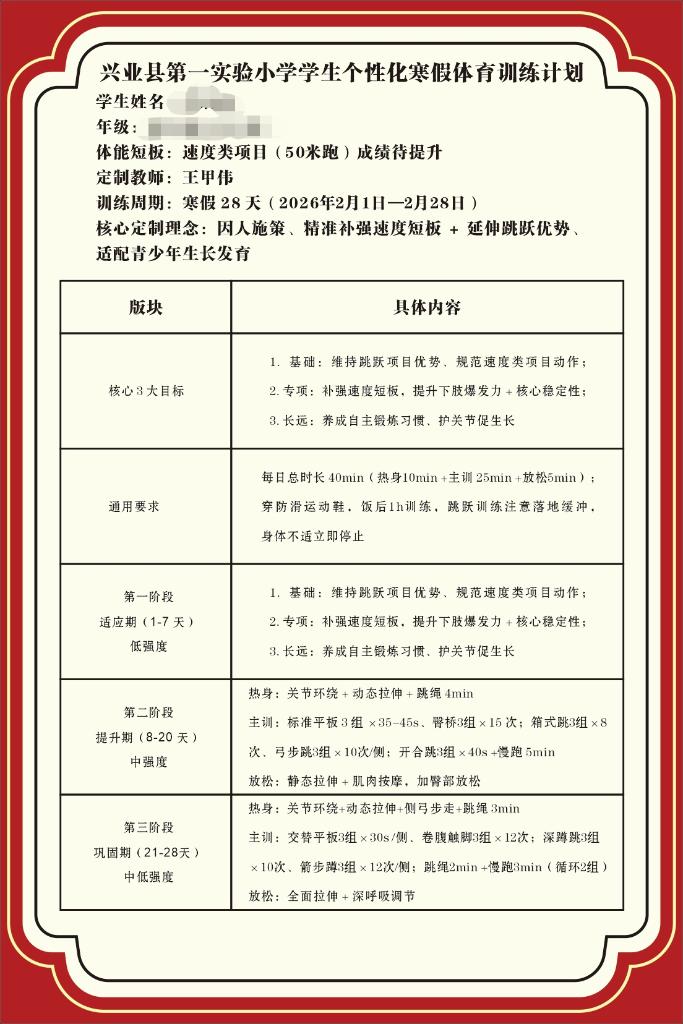 在兴业县第一实验小学,体育老师们围绕运动数据,制定寒假体育训练计划