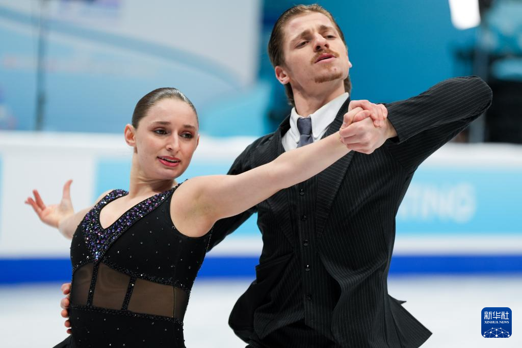 1月23日,美国组合埃米莉亚·津加斯/瓦迪姆·科列斯尼克(左)在冰舞自由舞比赛中。最终,他们获得冰上舞蹈项目冠军。