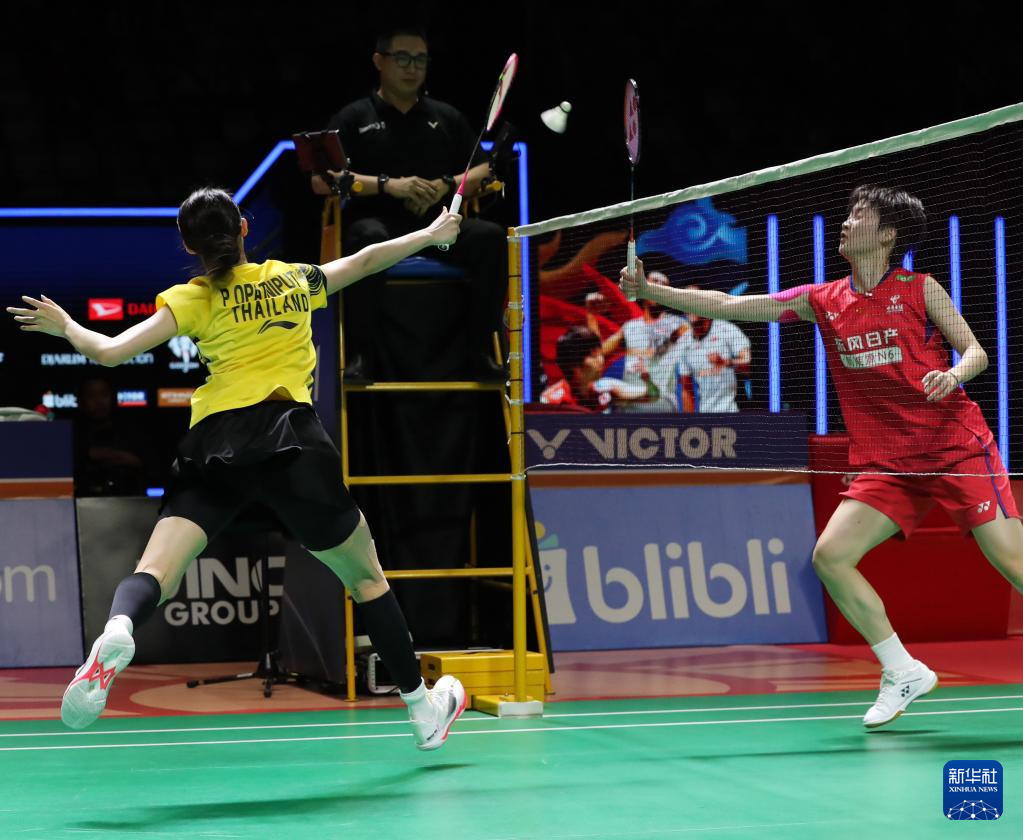 1月25日,陈雨菲(右)在网前争夺。