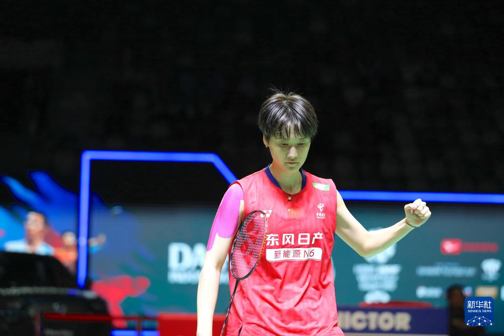 1月25日,陈雨菲在比赛中庆祝得分。