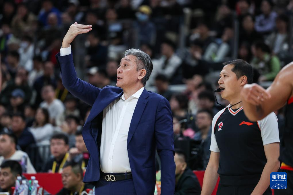 1月25日,深圳马可波罗队主教练郑永刚(左)在场边指挥。