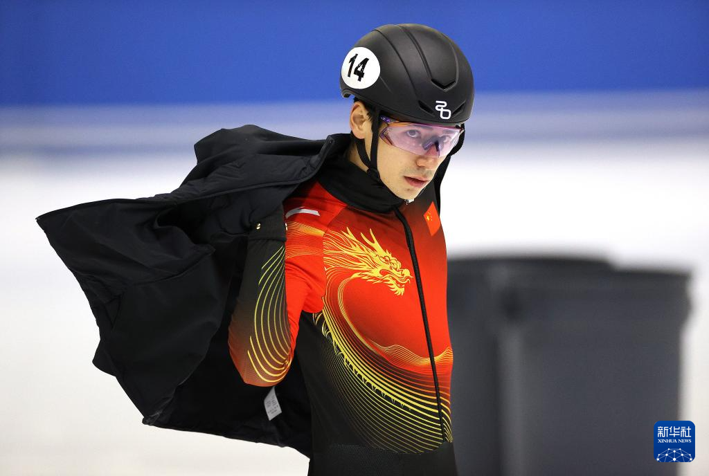 1月29日,中国短道速滑队选手林孝埈在训练前准备。