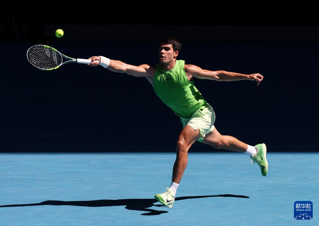 1月30日,阿尔卡拉斯在比赛中庆祝得分。