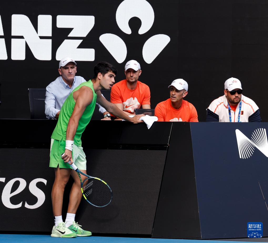1月30日,兹维列夫(后)和阿尔卡拉斯在比赛间隙。