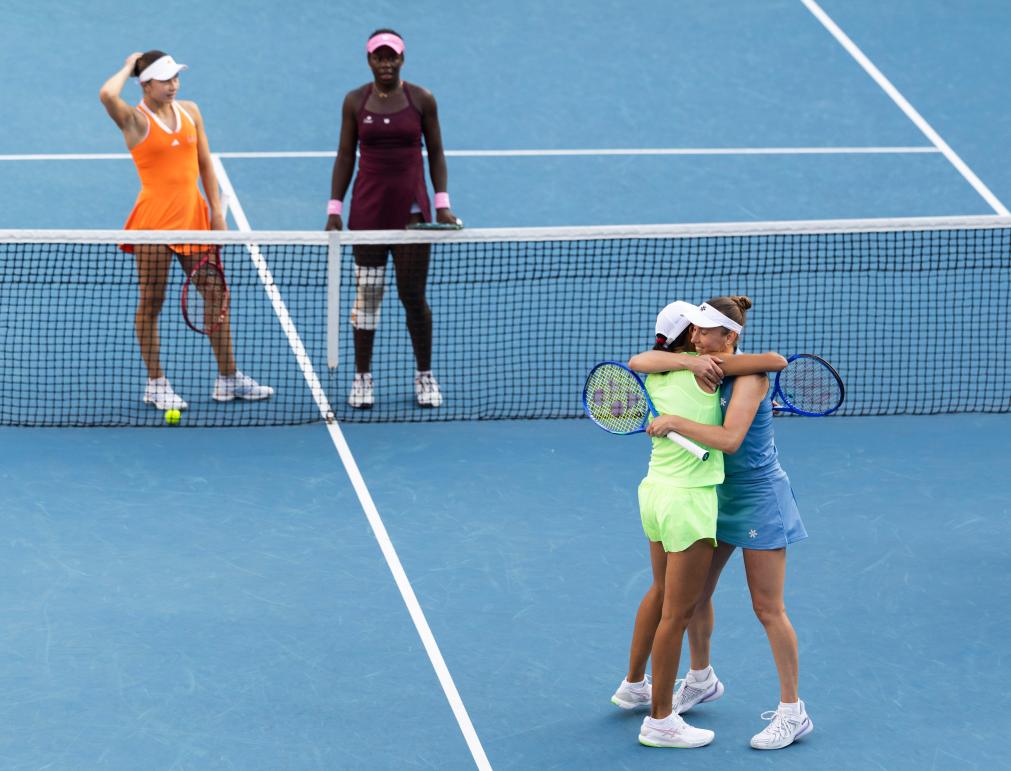 更难得的是,这是一对“临时重组”的组合。梅尔滕斯笑称,她们是最后一刻才组队的,这其实是两人重新搭档后的第一站比赛。上一次在大满贯搭档,她们打进了2022年温网女双决赛。