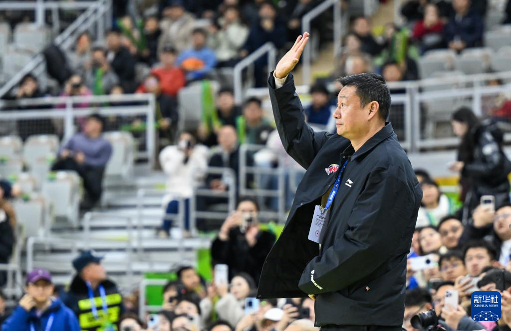 2月6日,前中国篮球运动员郑武在赛前向观众致意。