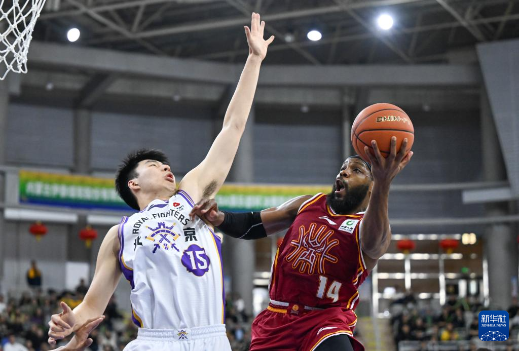 2月7日,山西汾酒队球员盖伊在比赛中庆祝。